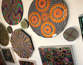 Sean Christopher Ward is an interdisciplinary artist focusing his efforts of painting in the style of op art with multiple mixtures of medias, including acrylics, alcohol-based paints and oil paints. Through his journey in the arts, he has found his major influences from Masters of the Op Art movement, including Bridget Riley and Victor Vasarely, who utilize flat design to create depth and kinetic movement through strict hard edges and the utilization of masterfully placed colors side by side or next to negative space in order to keep the works constantly moving within the optics of the viewer. Now extending past the singular flat plane, he has expanded to multi-plane artworks, which the series is entitled “Psychotropic Gradation” in which each level is hand painted or left without paint and it allows the perception of the paint coming off the canvas to envelop the viewer within the work itself with the high-gloss nature of resin. The process sounds traditional, but it begins in the digital realm of Adobe Digital Suite to create the reference design of the work first and foremost to ensure uniform designed effects of achieving ultra-crisp and planned results, then transitioning into the traditional realm of hand painting all the fields of colors onto the individual layers of the painting. This process sounds overwhelming, but it has become common practice for Sean’s works and you can see the commitment to excellence, with time being no factor, to spend weeks to months on an individual work of art until the final painting is achieved perfectly in the eyes of the artist.